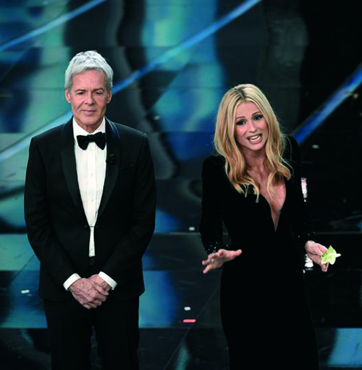 floreale che va dal verde pastello sino al bianco, deve cedere il passo, almeno in fatto di eleganza. Il marketing nostalgico della serata riguarda Sergio Endrigo e a celebrarlo viene chiamato Il Volo, “i tre giovani più vecchi del mondo” come scrivono i più perfidi. Immancabile risuona Nessun dorma, che assicura ai tre tenori la standing ovation d’ufficio. Chiamato sul palco da Claudio Baglioni, entra Pippo Baudo e si riprende quello che è suo. Padre nobile del Festival e della tv italiana, scopritore di star e protagonista di alcuni tra i momenti di spettacolo entrati di diritto nell’immaginario collettivo nazionale (Louis Armstrong, Benigni, Sharon Stone, Madonna), Baudo si gode il tifo da stadio dell’Ariston scattato in piedi: “Vi voglio bene, grazie a tutti” dice abbracciando con lo sguardo pubblico, musicisti, presentatori e tecnici. Il primo Festival l’ha condotto nel ’68, cinquant’anni fa: “Invecchiare è brutto, ma l’alternativa è peggio” scherza Baglioni e poi ricorda che è stato proprio “Pennellone” a scoprirlo a un concorso